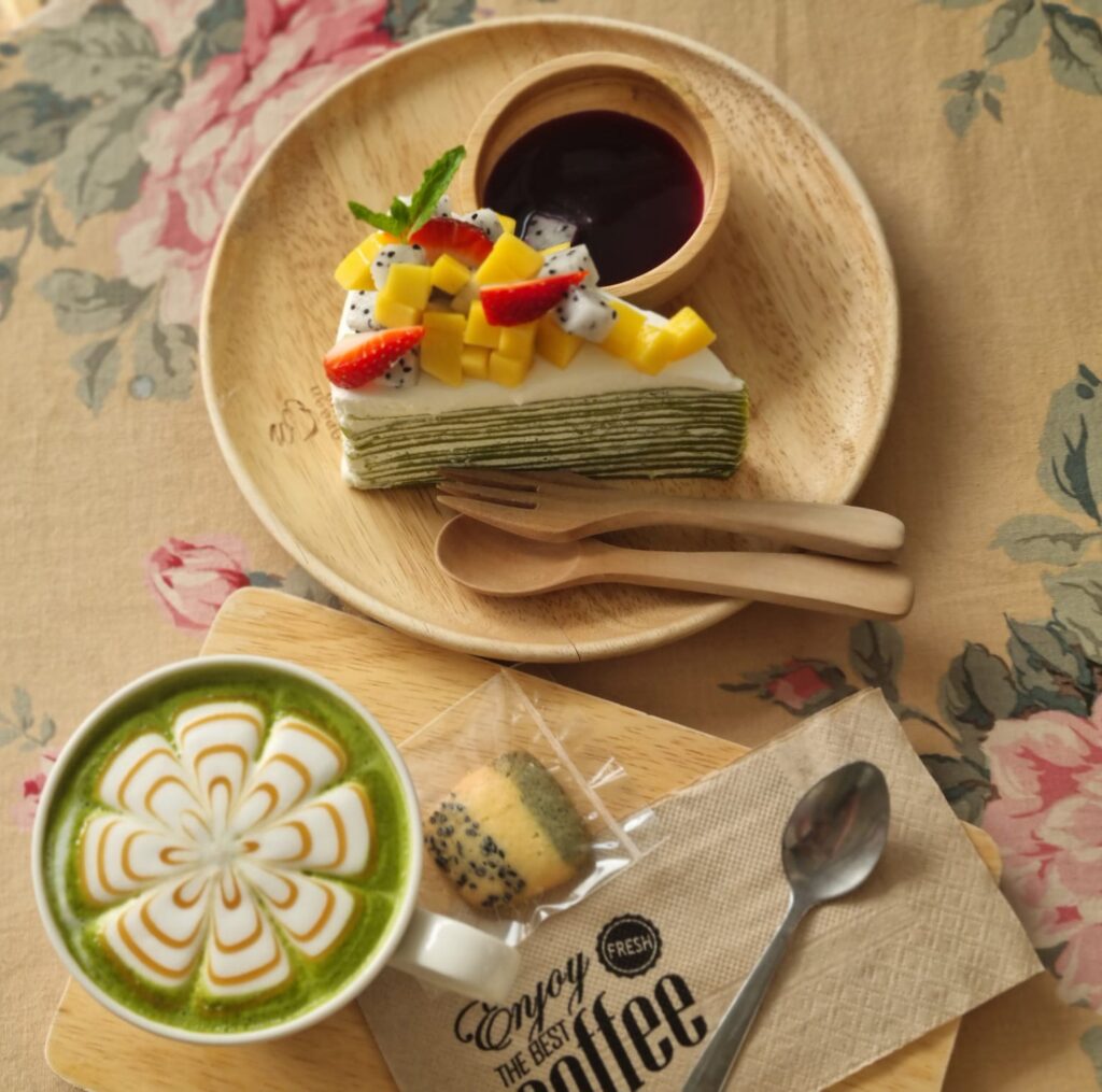 ‘Green Cup cafe serving spirulina cake…. delicious.’Green Cup cafe serving spirulina cake…. delicious.