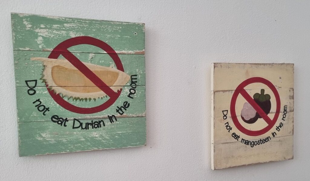 In all hotels they do not allow guest to bring Durian or mangosteen into rooms, they have a strong odor and leave stains.