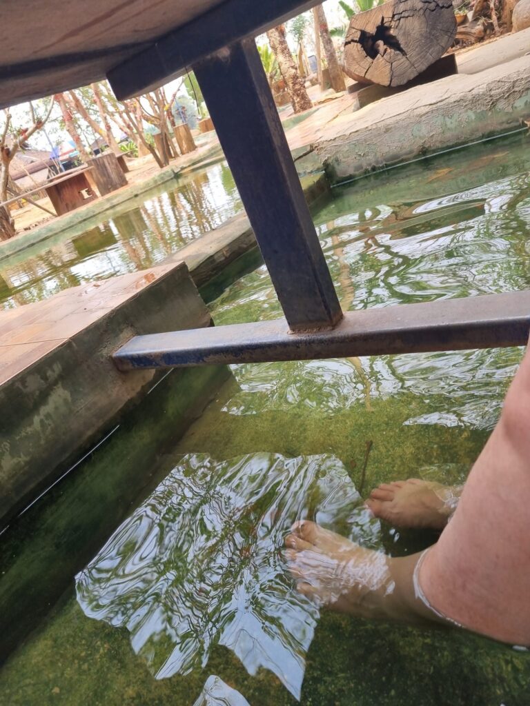 Dipping my feet in the therapeutic (and stinky) hot water from the hot spring.