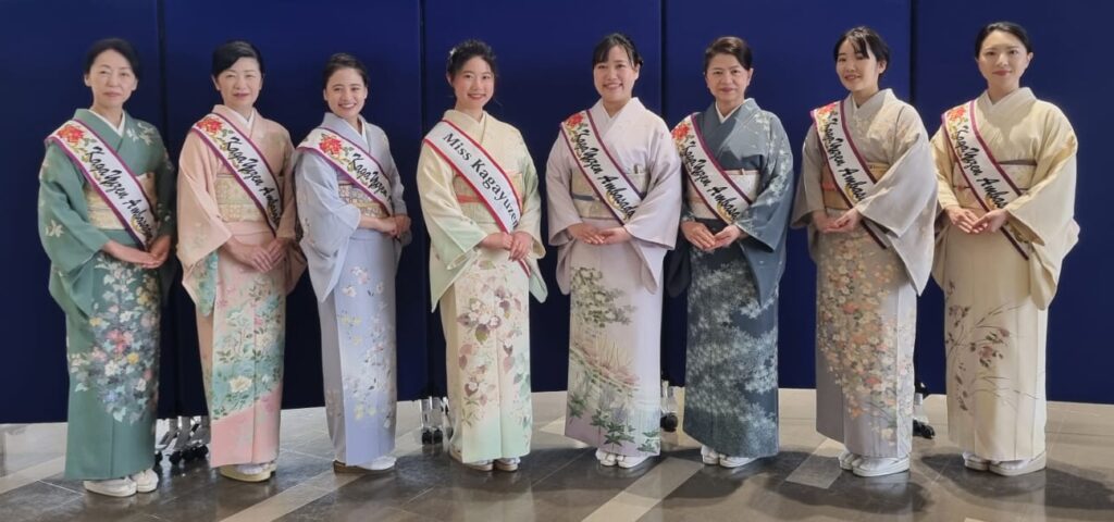At the ship’s port in Kanazawa, there was a warm welcoming group including women who had won pageants in previous years, dressed in traditional Japanese kimonos.