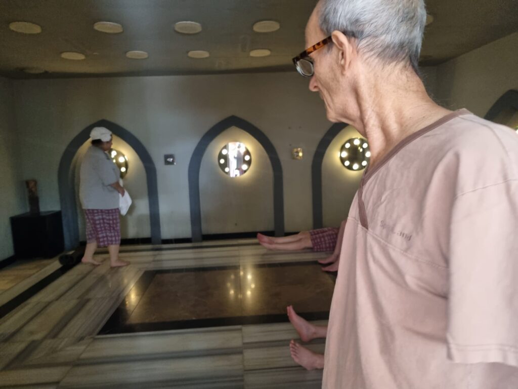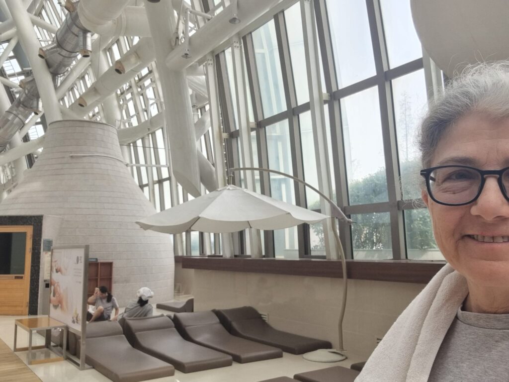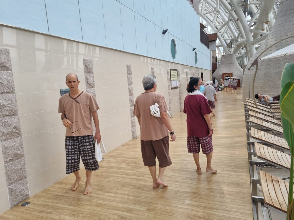 The area with the steam rooms and dry sauna’s and different spa rooms are for men and women together.